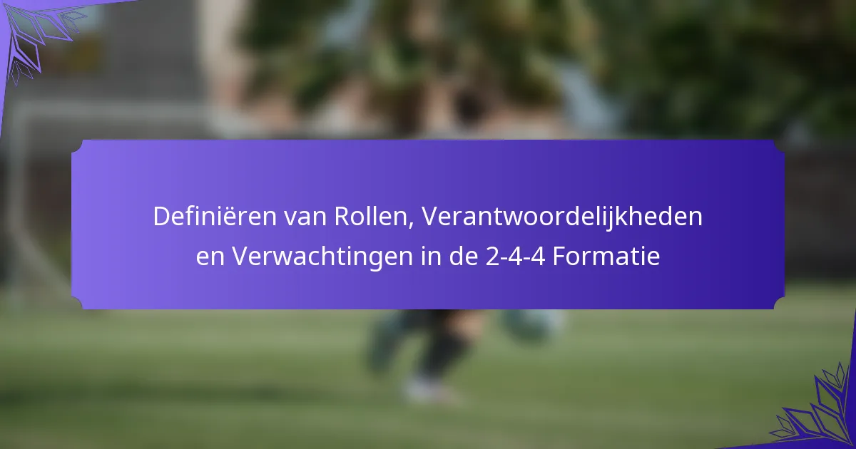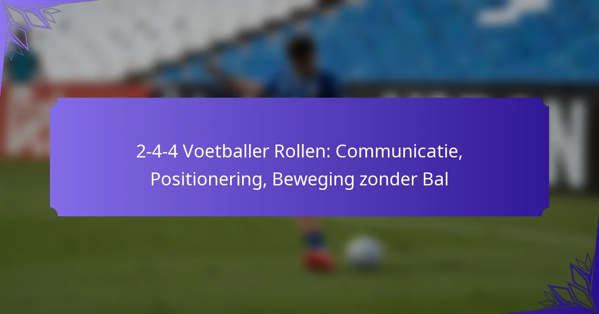 De 2-4-4 voetbalformatie bestaat uit twee verdedigers, vier middenvelders en vier aanvallers, waarbij elk een cruciale rol speelt in de strategie van het team. Belangrijke elementen zoals effectieve communicatie, strategische positionering en dynamische beweging zonder bal zijn essentieel om de sterke punten van deze formatie te benutten en de algehele teamperformantie te verbeteren.