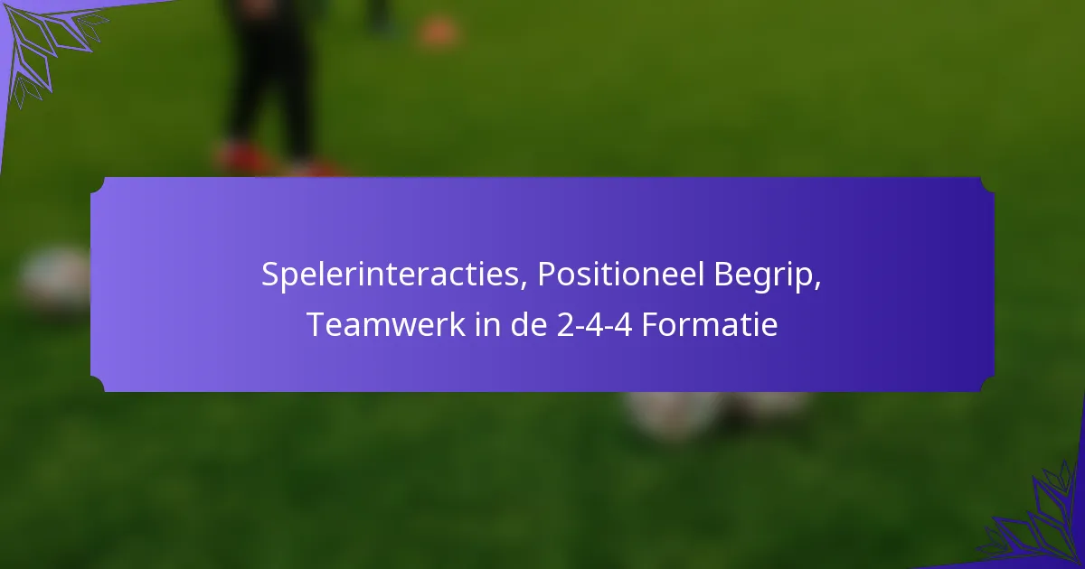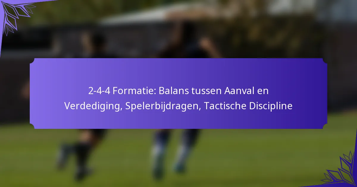 De 2-4-4 formatie bestaat uit twee centrale verdedigers die achteraan zijn gepositioneerd, vier middenvelders die kunnen schakelen tussen verdediging en aanval, en vier aanvallers die gericht zijn op het maximaliseren van scoringskansen. Deze structuur maakt een sterke offensieve druk mogelijk terwijl er toch enige defensieve dekking wordt geboden door de middenvelders.