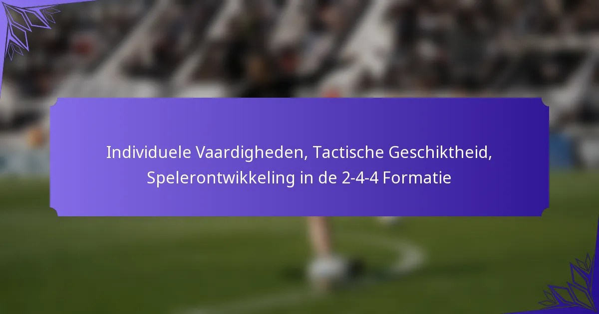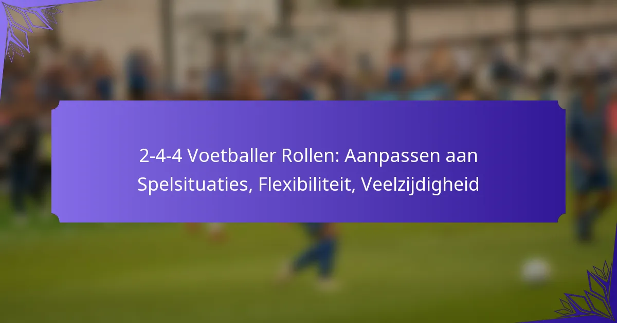 Elke speler in de 2-4-4 formatie heeft specifieke rollen die verschillende kenmerken vereisen. Verdedigers moeten sterk en tactisch zijn, middenvelders moeten wendbaar en creatief zijn, terwijl aanvallers snelheid en afwerkingsvaardigheden moeten bezitten om te profiteren van scoringskansen.